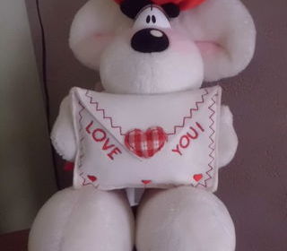 peluche diddle blanche et rouge avec sa pochette avec un coeur rouge dedans brode love 24 cm tres bon etat envoi rapide ref 415