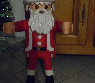 Père-Noël Playmobil XXL : hauteur 65 cm, les bras peuvent être bougés et le Père-Noël peut être mis en position assise, état réellement comme neuf, 100 euros sur Abbeville,