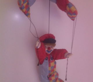 Marionnettes clown, de collection, 1 parachutiste et I traditionnelle, entre 50 et 60 cms, vendus séparément, le prix indiqué est UNITAIRE