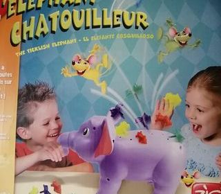 boîte de jeu l'éléphant chatouiller place les petites souris sur le dos tourne la trompe, amuse beaucoup les petits, rires garantis bon etat dans la boîte