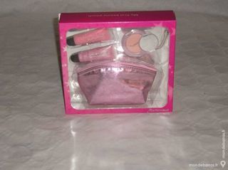 Coffret de maquillage MARIONNAUD « my first beauty pouch » composé de : 2 gloss à lèvre 1 fard à joue 1 trousse 1 mini miroir NEUF sous emballage, jamais ouvert. PRIX :