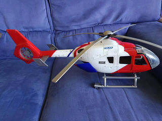 Bonjour, Je vends cet hélicoptère de police vintage de 2015. La cabine de pilotage est suffisamment grande pour mettre des Playmobil (non fourni), voir photo. Les hélices se repli