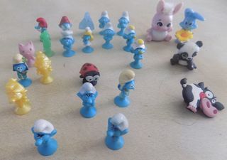 Lot de 24 mini figurines Schtroumpfs à ventouses et animaux fournies dans une sucette géante idéales pour mettre dans des décors