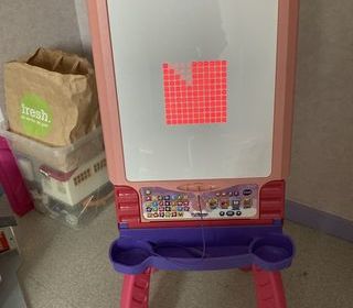 Tableau interactif de vtech en l état. Je n ai plus le carton d emballage et je n ai pas réussi à retourner le tableau pour le mettre côté tableau à craies.