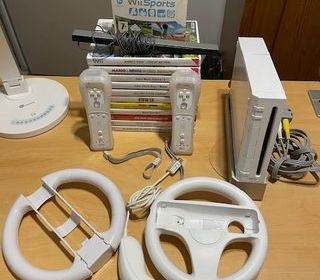 Console de jeux Wii en très bon état avec 13 jeux et 2 volants