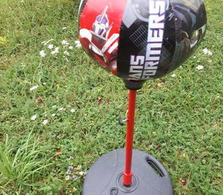 Socle pouvant être rempli par de l'eau ou du sable Diamètre du socle 37 cm Hauteur minimale 90 cm Hauteur maximale 120 cm Ballon rouge et noir Très bon état Possibilité de li