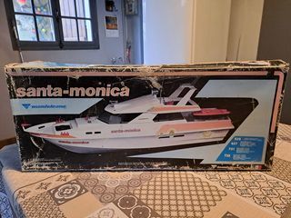 Ancien bateau de Collection a télécommande filaire Santa Monica Montéléone Team Drapeau Italien Année 70 - 80 dans sa boite d'origine mais pas de même couleur. Parfait état,