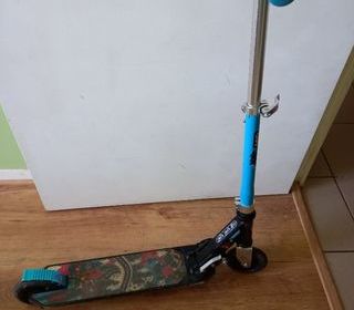 Trottinette bleue marque Oxelo Mid 1 taille 6 à 9 ans en bon état // se règle en hauteur // se plie // frein roue arrière // REMISE EN MAIN PROPRE EXCLUSIVEMENT pour de plus