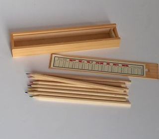 Plumier en bois avec 8 crayons de couleurs et une règle, parfait pour l'école, écolo Le couvercle fait table de multiplication d'un côté et règl