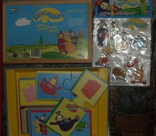 Lot de 2 jeux Teletubbies + 12 Glitter Stickers En très bon état même Neufs pour Le Domino et les Stickers -Lot de 28 dominos en bois Teletubbies 1996 ragdoll France très rare.