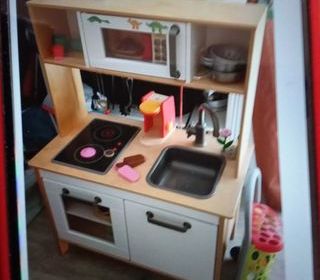 Pour Noël une cuisinette IKEA bois clair beige et blanche et ses accessoires, très bon état. A retirer sur place à Bachy.