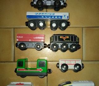 les wagons et locomotive sont issus de différents circuits 1 seule locomotive fonctionne (en bas à gauche) pour circuit train en bois Remise en main propre possible sur Paris