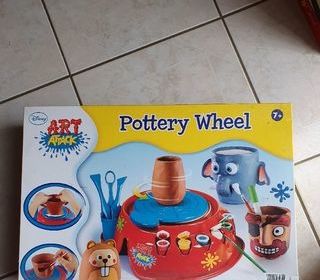tour de potier Clementoni / Disney / Art Attack SANS COULEUR, SANS ARGILE, SANS LES AUTO COLLANTS DECORATIFS il y a : 1 tour avec rangements pour peinture 1 moteur pour tour