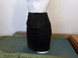 Jupe Courte Cintrée Marron avec ses 2 Poches- Taille 34 * Jupe courte en coton ciré effet cuir mat marron, cintrée à la taille, avec 1 poche de chaque coté sur le devant, 2 faus