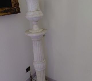 Colonne en albâtre blanc veiné comprenant : - une vasque hauteur 40 cm Diamètre 24,5 cm