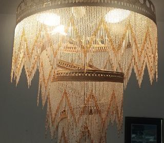 Vends joli lampadaire de Salon, acheté à Murano, en assez bon état. Couleur des perles ambres, dorées et transparentes.