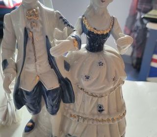 1 lampe à poser décorative céramique représentant un couple en costume d'époque.