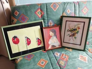 Meuble CD/DVD 87X33, Porte manteaux bois, Statuette, Lampe bois, Peintures diverses non encadrées et d'autres encadrées. Suite décès. Sur place uniquement. Les prix des produits so