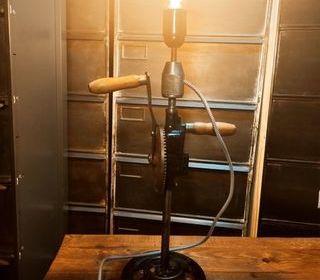 Cette lampe au style industriel apporte un vrai caractère à un intérieur. Conçue à partir d'une chignole ancienne et d'éléments mécaniques, elle offre un look authentique et origin