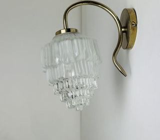 Superbe applique en laiton avec son abat-jour Art-déco Skyscraper. En bel état général. A noter des traces du temps. Belle lumière. Electricité refaite. Branchement par domino. Do