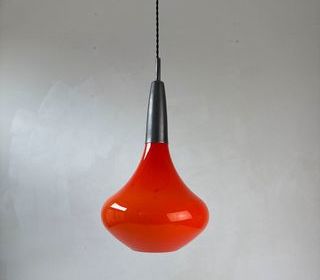 ENVOI POSSIBLE Achat sécurisé sur notre site internet nikel-forms Adresse sur simple demande Magnifique suspension en opaline orange des années 1970. Forme goutte. Très be