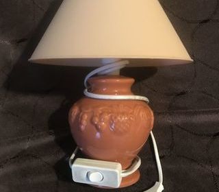 lot de deux lampes de chevet coloris SIENNE (entre orange et marron) voir photos sur les boules motifs de fruits en relief petits chapeau de lampe en tissus tendus orange très