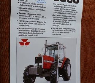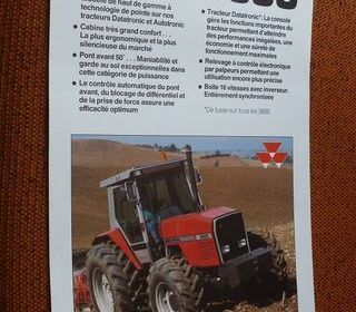 Bonjour, je vends , mais je cherche surtout l'échange de ce prospectus publicitaire de tracteurs de la marque MASSEY FERGUSON Type MF 3680. Document en très bon état, puisque