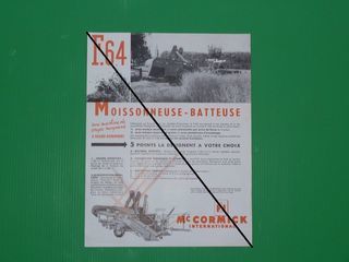 Bonjour, Collectionneurs de prospectus , ceci vous intéresse ! Je vends, mais je cherche surtout à échanger cette publicité de Moissonneuse- Batteuse tractée de la marque Mac COR
