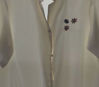 chemisier uni blanc cassé de chez C&A avec fleurs sur la poitrine gauche taille 38/40 100% polyester " lingerie " de chez C&A Chemisier col français et manches courtes tran