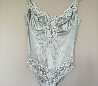 Body LOU gris perle et or, satin et dentelle en haut, en bas et sur le décolleté. Taille (France): 100C (pour l'indication "42 XL" je suis obligée de cocher une case mais je pens