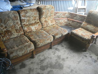 Canapé d'angle convertible lit 2 places en tissu et bois massif. Le lit, l'angle ( petite tablette ) et le fauteuil. Cause déménagement. Bon état. Possibilité de livraison rayon 2