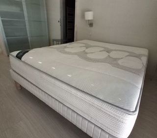 Pour cause déménagement, vends lit de dimensions 160 x 200 ep 24cm Excellent état Matelas Latex confort médium (72 zones de confort) , non réversible en laine, soie et lin.