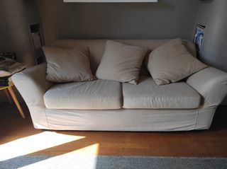 Canape convertible entièrement déhoussable très bon état Longueur fermé 2m l 96cm hauteur dossier 80cm Ouvert matelas très confortable très peu servi L 2m l 1.40m A retirer sur p