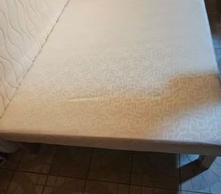 Lit tapissier bon état avec ses 4 pieds Dimensions 140*160