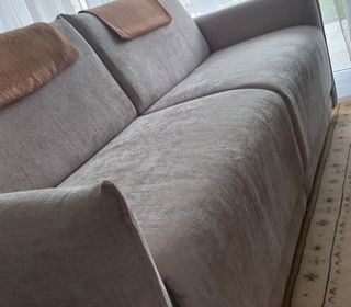 Vends un canapé confortable droit fixe de 3 places (personnes) avec ses accoudoirs : - Modèle : canapé fixe avec deux accoudoirs. Canapé non-convertible en lit. - Matières : bois