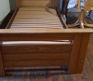 Vends lit rouleau ancien en merisier et son sommier tapissier Epéda Sur roulettes Pour 1 personne Attention une petite partie à restaurer (voir photo 6) Dimensions extérieu