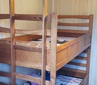 lits superposables ou jumelables en bois massif, couleur pin maritime avec sommiers bois et matelas.