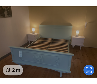 Cadre de lit 140 2 personnes avec sommier lattes et deux chevets assortis en bon état couleur bleu.