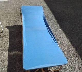 Lit de camp bleu "LAMA" Bon état A venir chercher sur place. Règlement liquide. Contact par téléphone pour renseignements supplémentaires