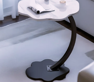 Originale et pleine de charme, cette petite table ronde imite la forme d'une fleur délicate. Son pied incurvé en métal noir soutient un plateau clair, doux au toucher, qui capte jo