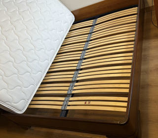 Cadre de lit en merisier moyen 148 x 193 x 40 cm Pieds, angles et socle en aulne d'Orégon massif, cadre MDF plaqué merisier Matelas couchage 140 x 190 (138 x 188 x 22) en coutil