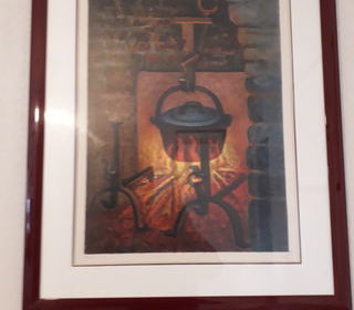 Lithographie originale de TOFFOLI " l' âtre " sur papier arche 76 cm x 56 cm cadre 96 cm x 75 cm certificat d' authenticité