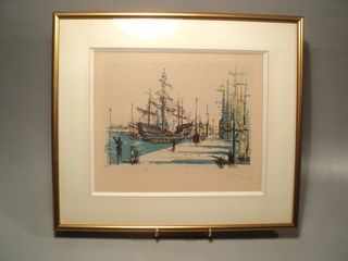 Jean Carzou Lithographie Encadrée Représentant un Port 1954. Encadrement format : 36,5cm x 32cm Lithographie à vue : 24,5cm x 20cm Très bon état de l'ensemble, léger ja