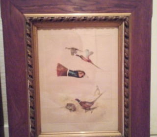 Lithographie animalière têtes de faisan de Boris Stepanovitch Riabouchin Riab (1898-1975) - Cophyright Ch.ducher et Cie 35 av de l'opéra paris n°740 dans son double cadre en bois
