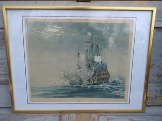 Tableau Marine Albert Sébille Lithographie Ancienne Rehauts Gouache " Combat du Maure " (1694). Encadrement : 41cm x 31cm Lithographie à vue: 30cm x 24,5cm. Bon état. Cad