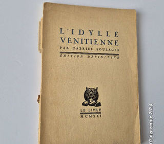 L'idylle vénitienne. le livre, 1921; Gabriel Soulage recueil de textes courts Recueil de textes courts sur l'amour, encadrés d'un liseré bleu. Les titres so