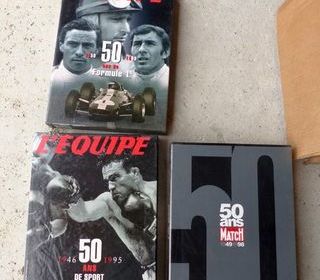L'equipe 50 ans de F1 coffret relie 1950 1999 25 euros L'equipe 50 ans de sport coffret relie 1946 1995 20 euros Paris match 50 ans coffret relie 1949 1998 20 euros