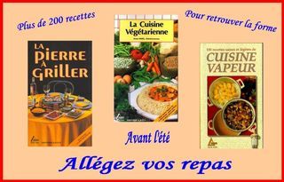 Voici trois livres Pour trouver la recette Plus légère et plus saine qui régalera vos convives : CUISINE VEGETARIENNE LA PIERRE A GRILLER LA CUISINE VAPEUR Elles permett