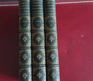 Rare Chants et chansons populaires de France DELLOYE 1843 complet 3 TOMES. Premier tirage, Reliure plein maroquin, lisérés dorés sur les plats, toutes tranches dorées. Bien c