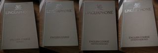 livre et cassettes anglais comprenant 4 livres exercices orale et écrit. un Manuel et cours. et 9 cassettes et une vierge.